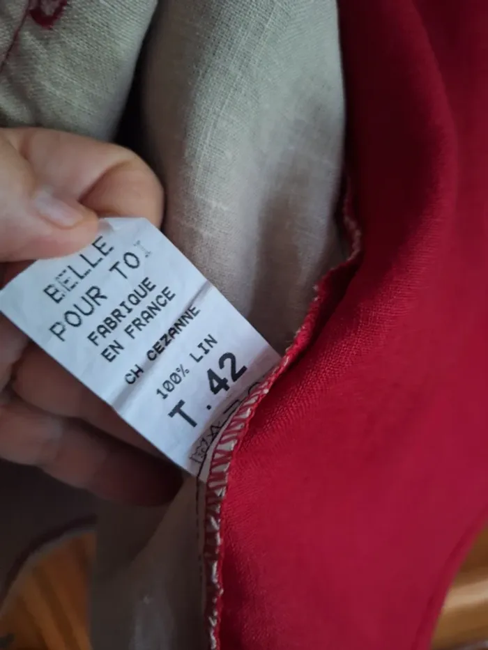 100 pour cent lin T 42 mais conviendra pour une taille 40 Comme neuf Vêtement de très bonne qualité de fabrication française Marque belle pour toi Valeur d achat 99 euros Consulter mes autres annonces pour composer des lots et faire des économies