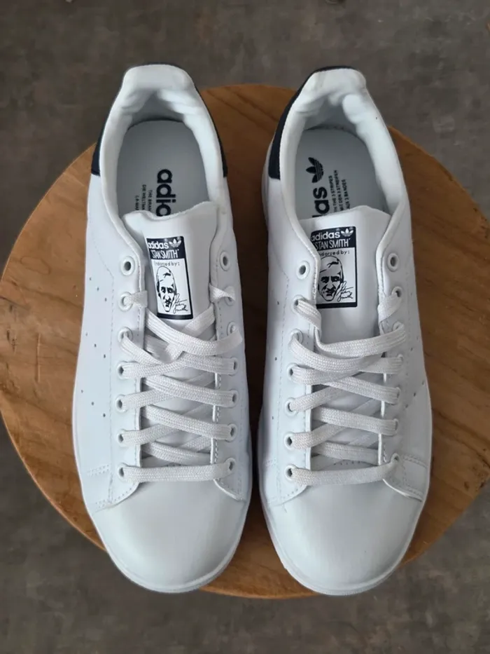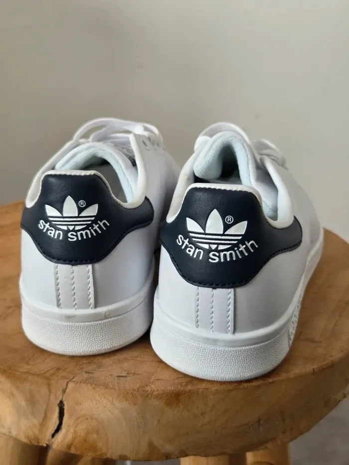 Basket Stan Smith 39 1/3 jamais portées. ADIDAS Blanc / marine Authentique le qr code mène sur le site officiel