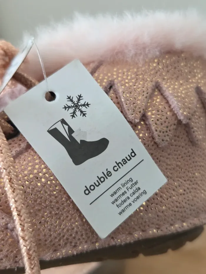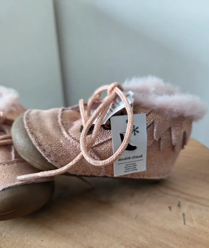 Bottines chaudes pour l'hiver , fourrées PAT ET RIPATON en cuir rose
