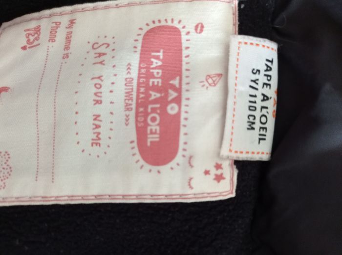 Marque tape à l'oeil 5 ans manteau noir pour fille avec capuche