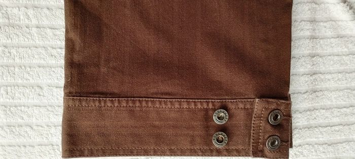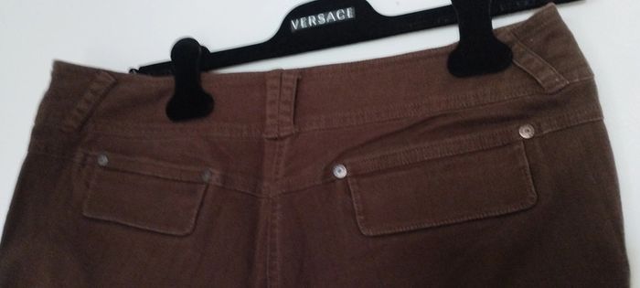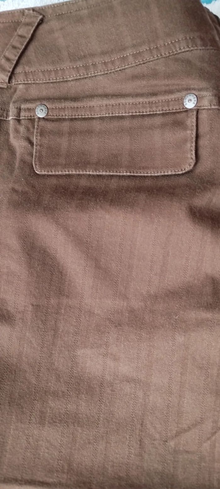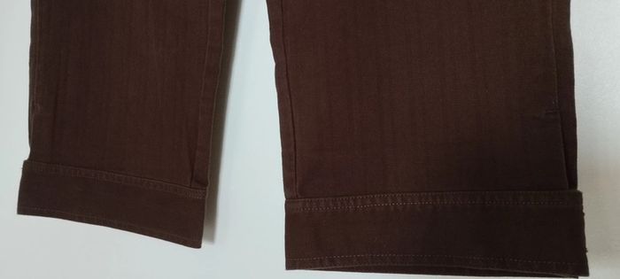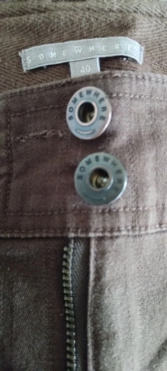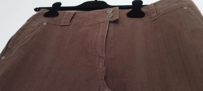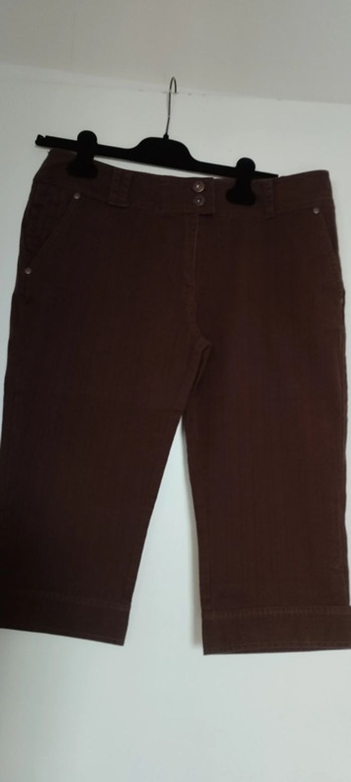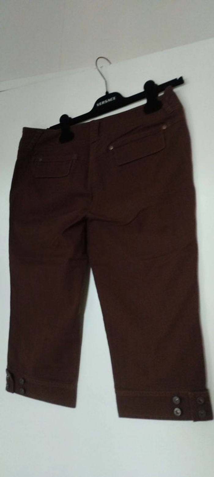 Très joli bermuda femme de la marque Somewhere, coloris Marron tissus aspect rayures (voir les 2 dernières photos). 2 poches obliques avant et 2 autres plaquées arrière . Passants pour ceinture, fermeture par 2 boutons et 1 fermeture métal, bas du bermuda patte avec boutons réglables ou pas ! Longueur 67cm, Très bon état.