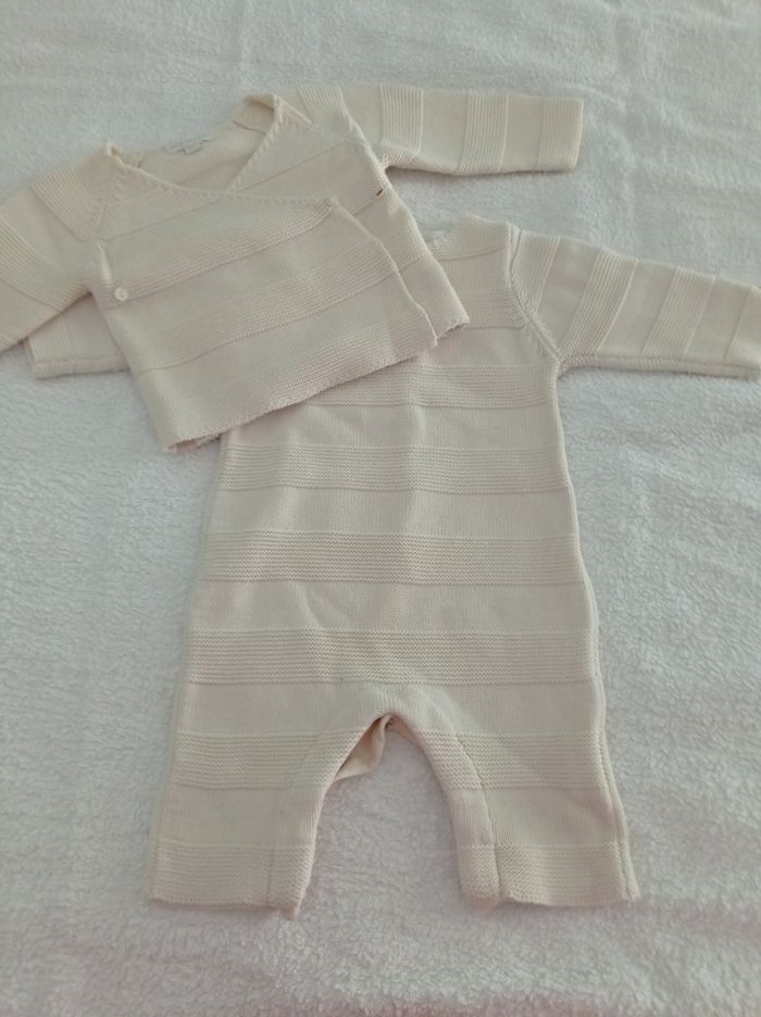 Ensemble pour bébé combinaison plus petit pull couleur crème taille 3 mois matière bio