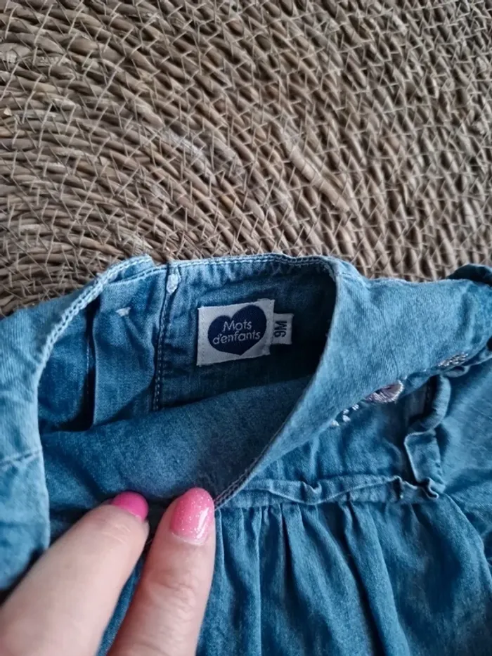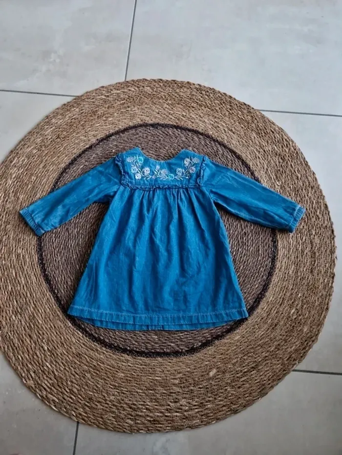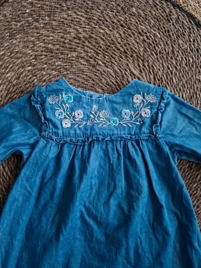 Jolie robe en jean avec broderies fille taille 9 mois - photo numéro 1