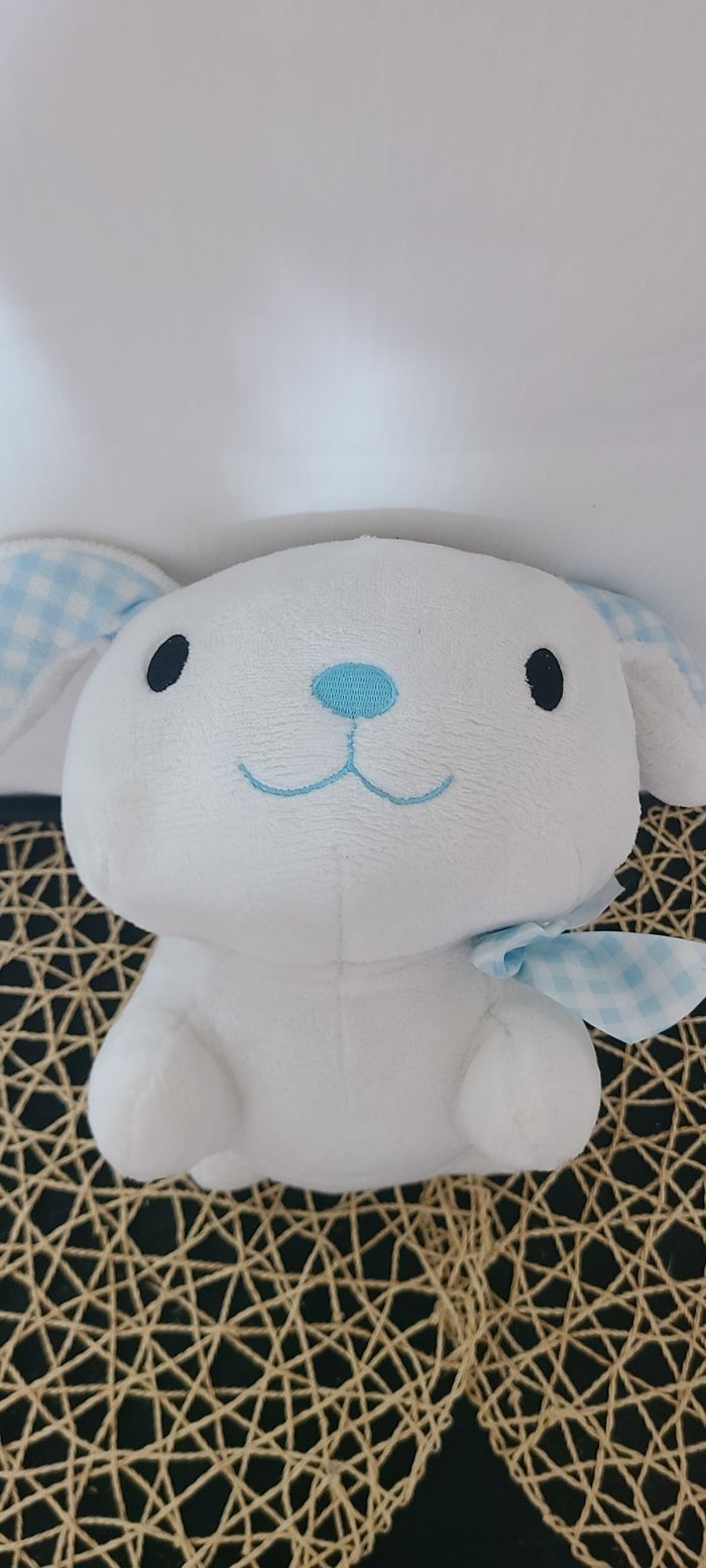 peluche lapin MAX & SAX carreaux blanc et bleu - photo numéro 5