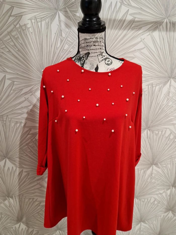 Jolie robe rouge avec perles taille 36 et 38 - photo numéro 1