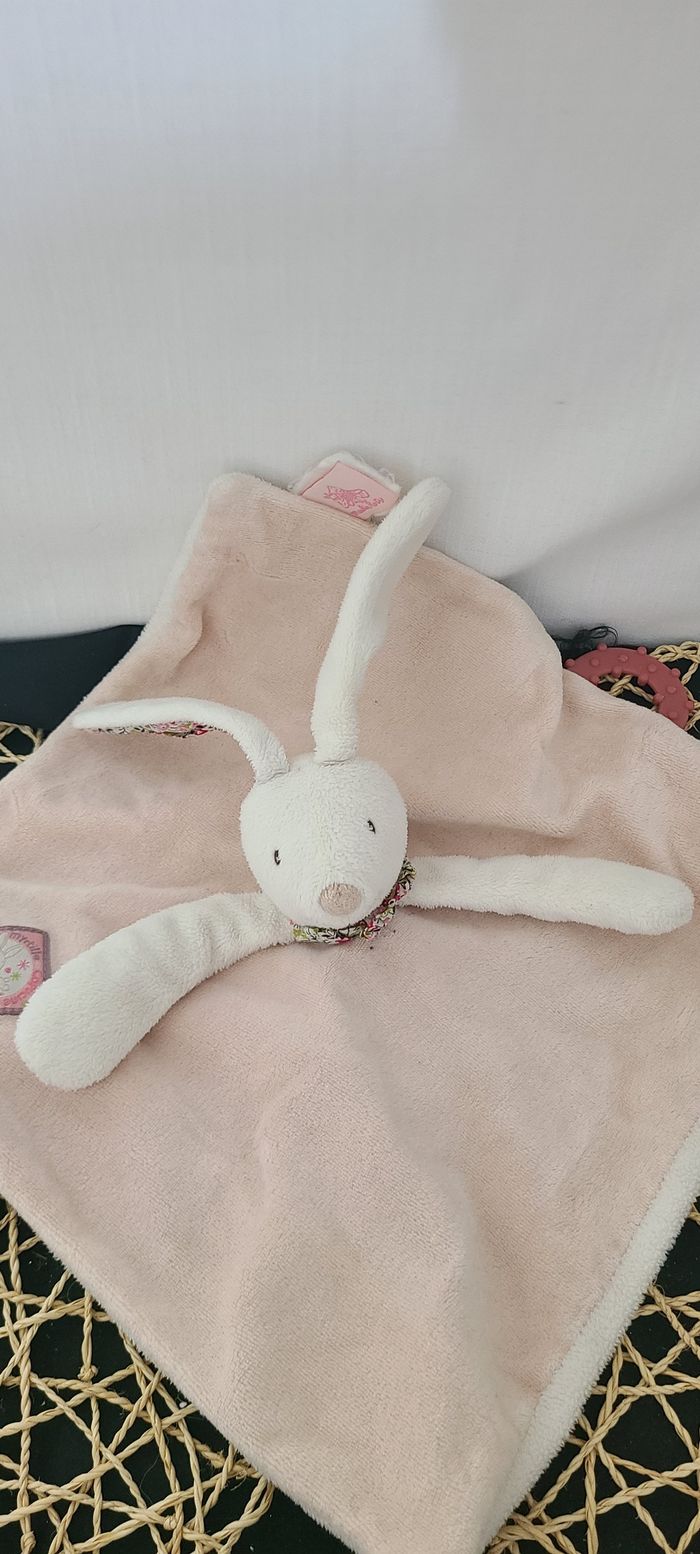 Doudou plat Lapin rose blanc fleurs Myrtille et Capucine MOULIN ROTY - photo numéro 1