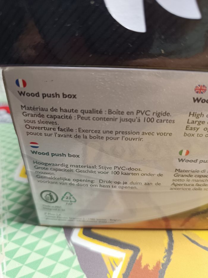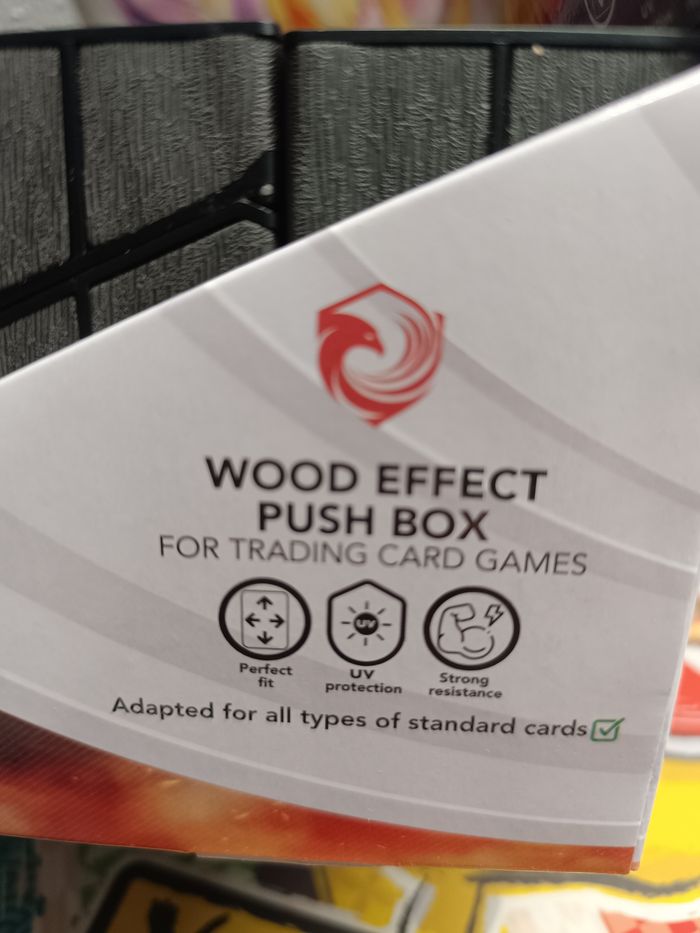 Box de rangement cartes Marron - PHOENIX SHIELD - NEUF Effet et style boisé Permet de ranger un minimum de 100 cartes sous sleeves 10.2 cm de haut / 7.5 cm de large / 4.5 cm de profond Le logo Phoenix Shield est gravé au centre. d'autre couleurs sont disponible La caverne de Cydalise