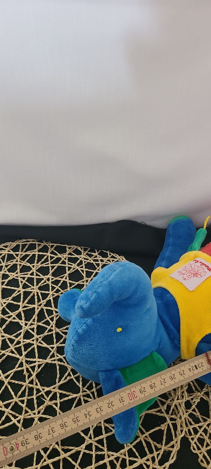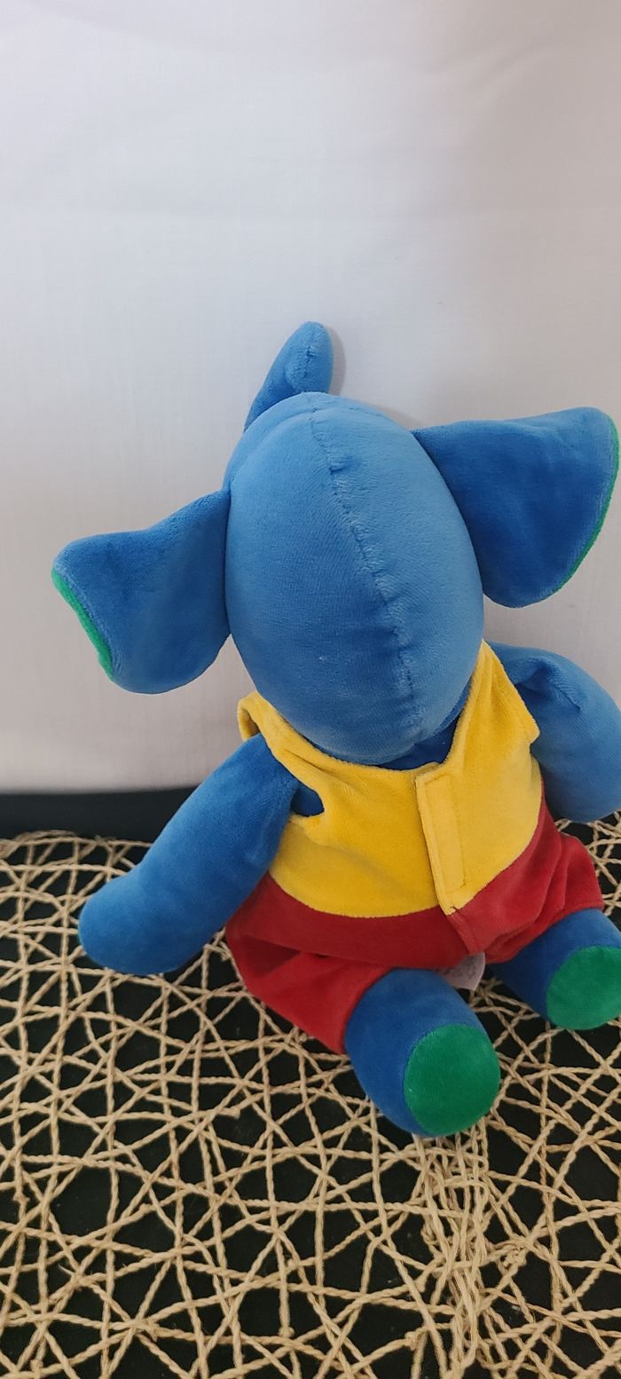 doudou elephant bleu vert salopette jaune rouge peluche moulin roty - - photo numéro 5