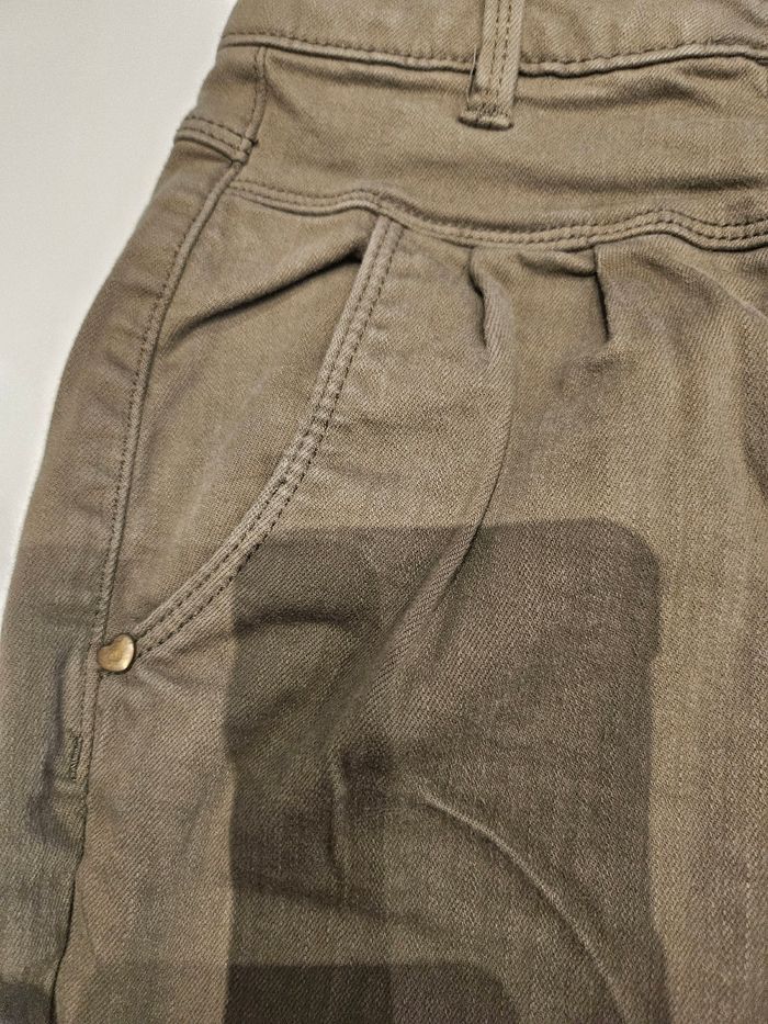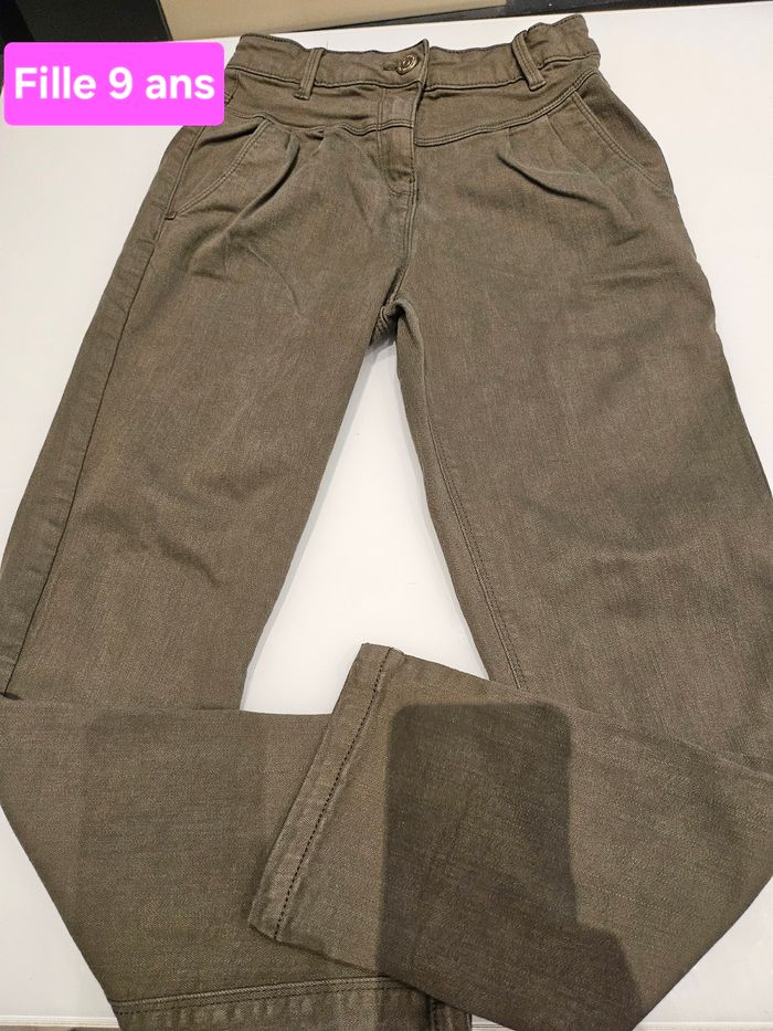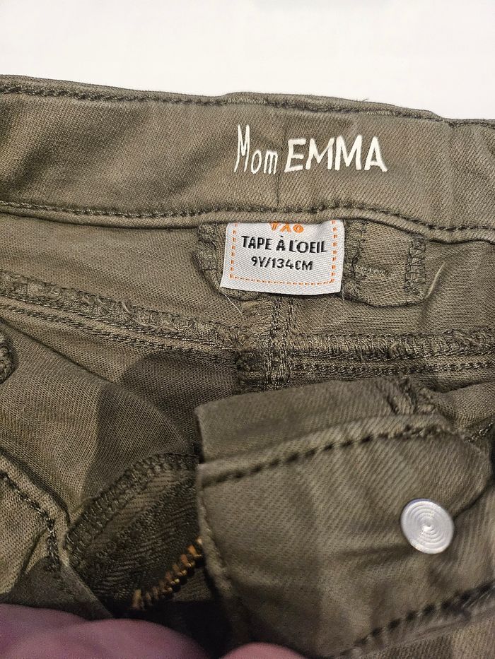 Jean MOM Emma kaki. Se ferme avec bouton et fermeture. Taille réglable. Deux poches devant et deux derrière. Marque: Tape à l'oeil (TAO) Taille : 9 ans