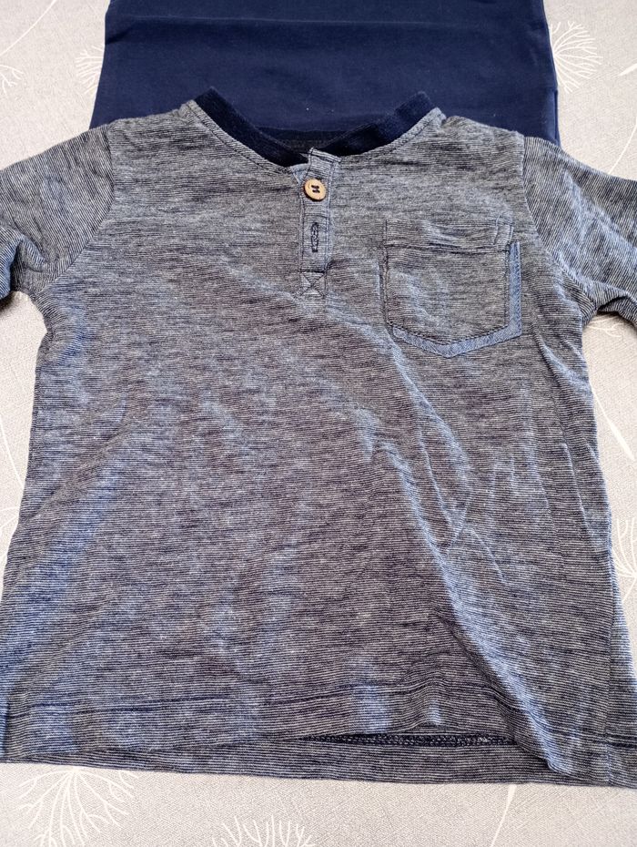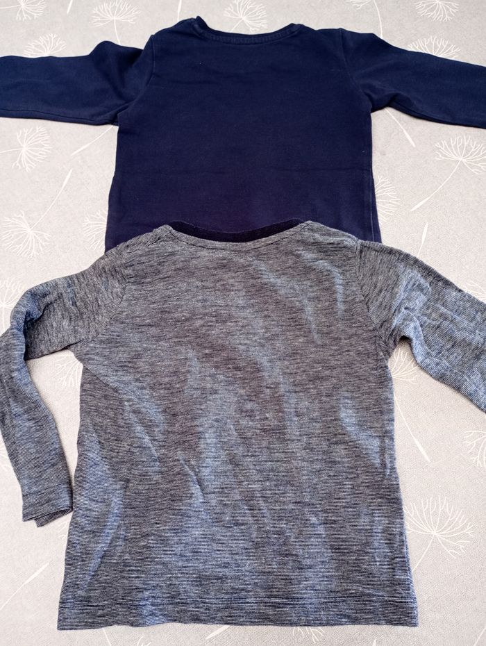 Lot de 2 t-shirts manches longues en taille 86. Gris chiné, marque Boite à malices. Bleu marine, marque JBC. Très bon état. Bac 29