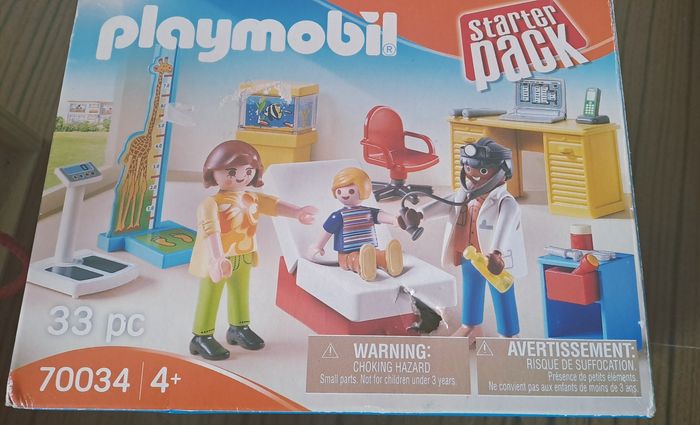 Starter pack playmobil cabinet pediatrique, complet, boîte abîmée D'autres playmobil sont en vente réduction sur les lots
