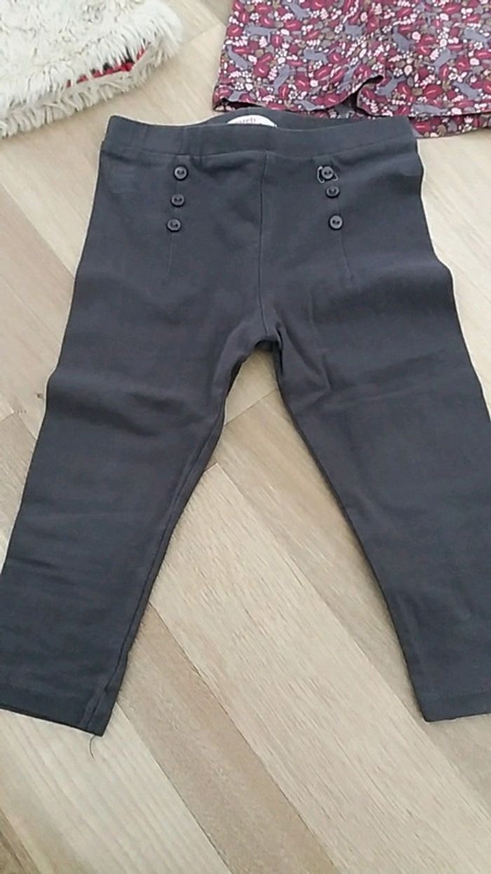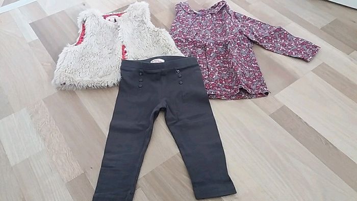 Ensemble fille marque du pareil au même taille 18 mois Gilet beige + chemisier à fleurs + leggings gris #pauline564001_fille18mois
