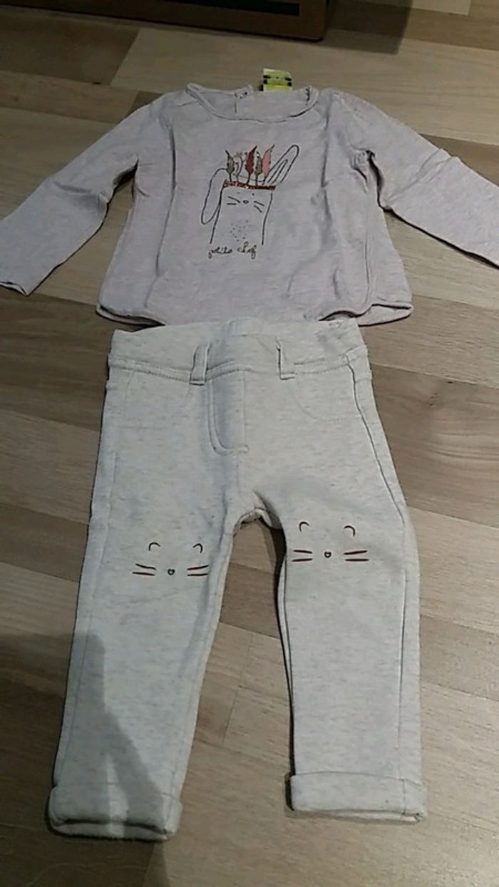 Ensemble fille taille 12 mois marque tape à l'oeil Tee shirt manches longues rose clair + pantalon crème #pauline564001_fille12mois
