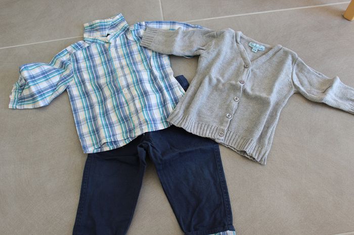 ensemble garçon 12 mois de marque kimbabloo pantalon bleu marine + chemise manches longues + gilet gris #pauline564001_garcon12mois