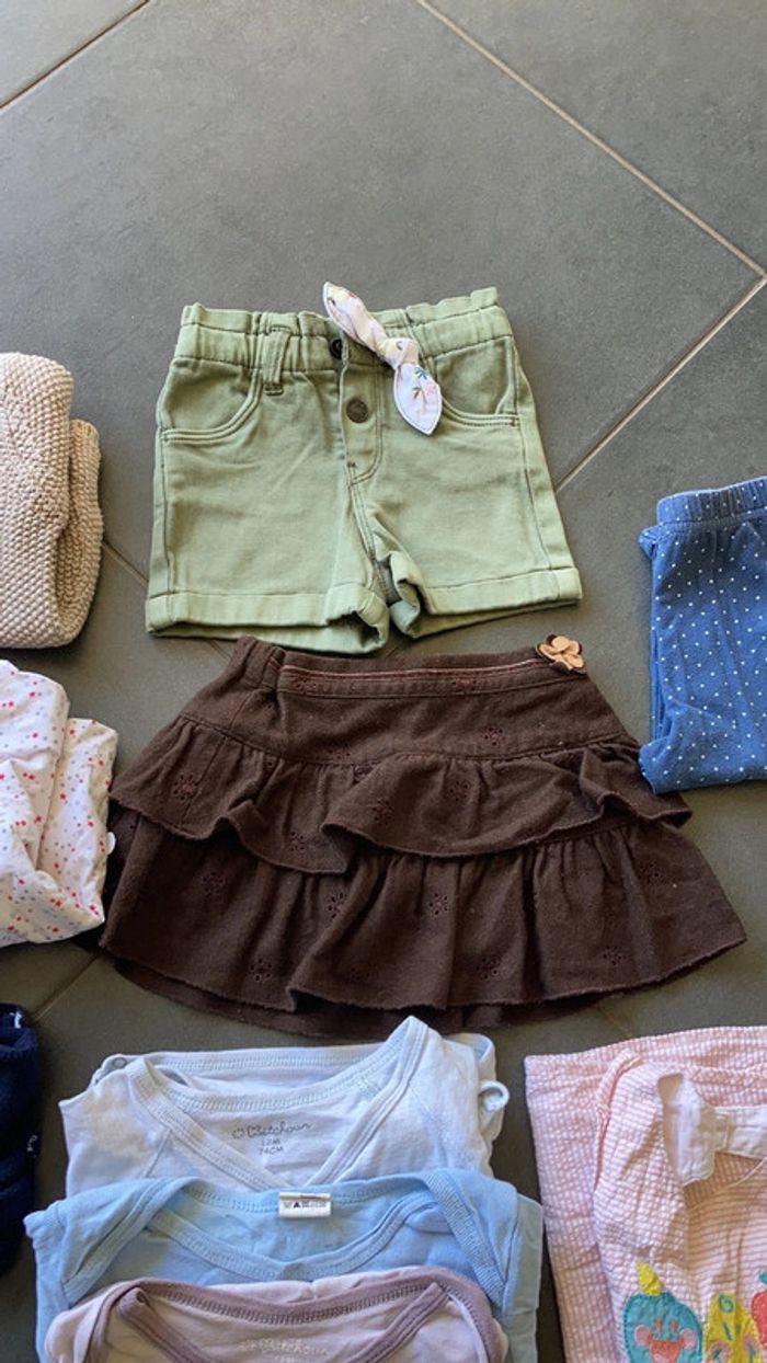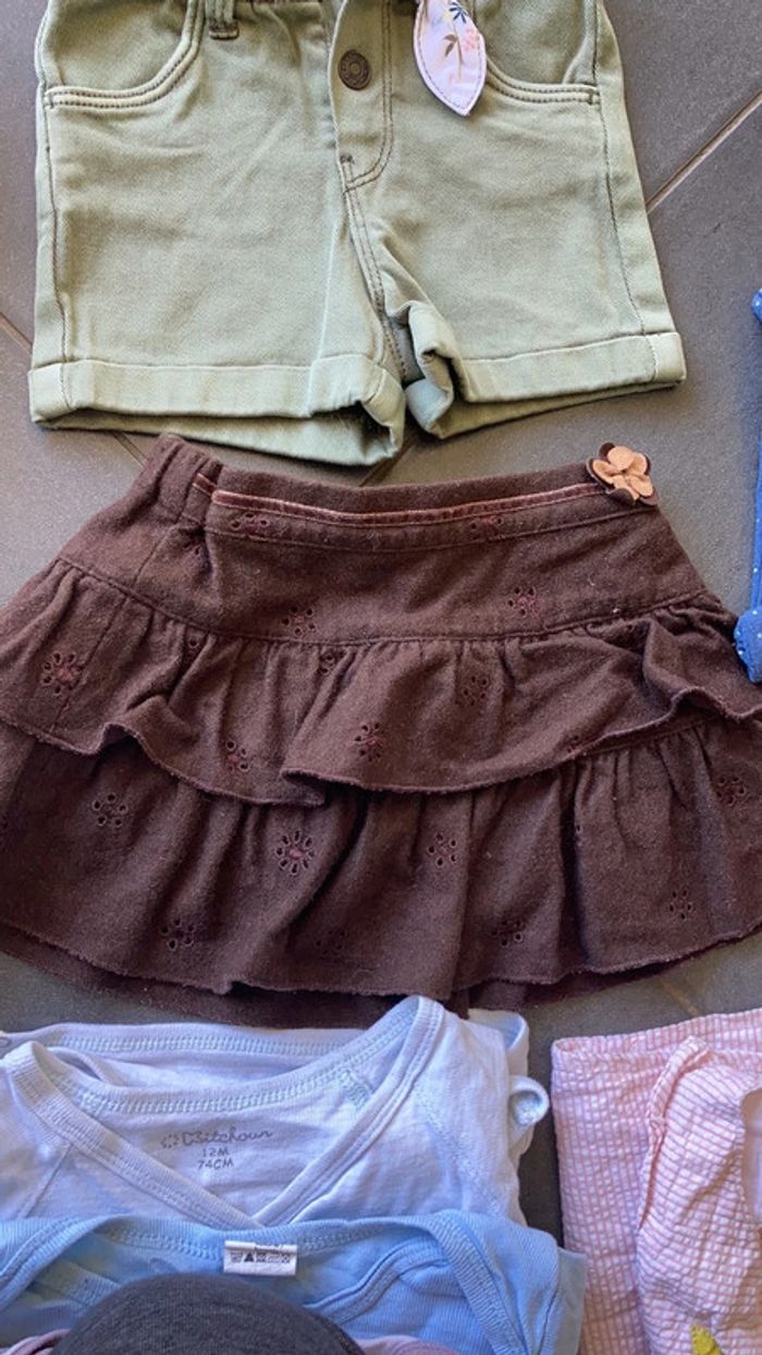 Lot 11 vêtements filles 18mois - 1 short en jeans - 1 jupe - 1 leggings -3 bodies - 2 robes - 1 tunique - 1 gilet - 1gilet chaud (beige) Différentes marques