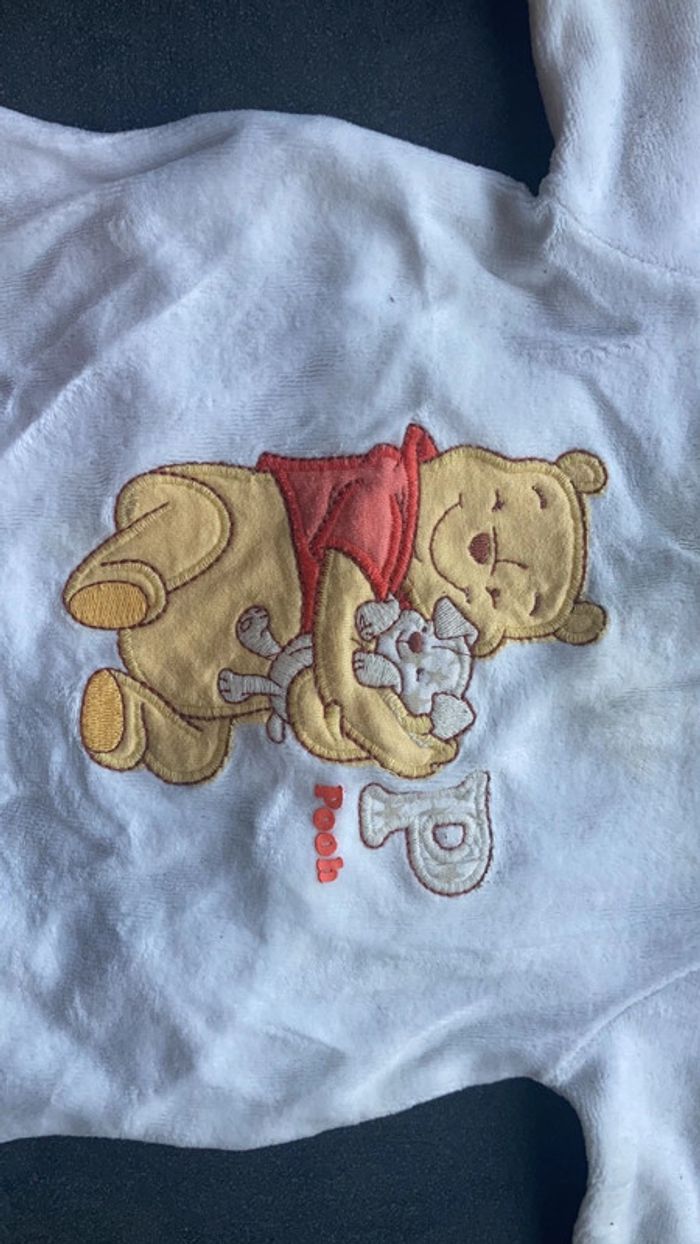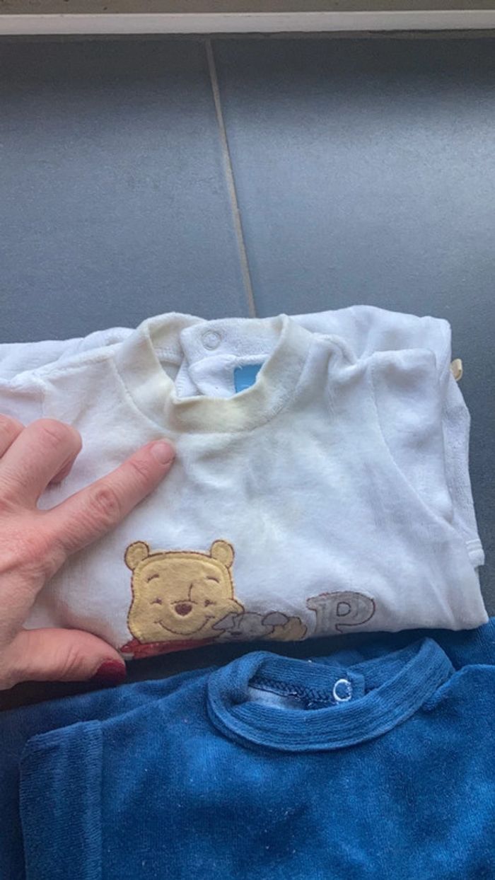 lot de 3 pyjamas en velours de différentes marques taille 1M seul le pyjama de Winnie comporte quelques traces au col , mais je frotterais bien la tâche avant de vous l’envoyer ( voir dernière photo)