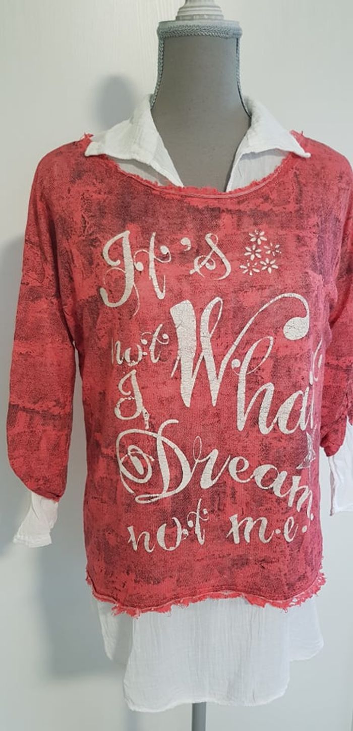 Pull léger avec chemise blanche, dentelle dans le dos et écritures sur le devant. Matière 50% polyester, 45% viscose et 5% élasthanne. N'hésitez pas à me contacter pour plus de renseignements. Faites un lot et je vous ferai un prix ! :) #Sorenza2806TailleS #Sorenza2806Taille36 #Sorenza2806Femme
