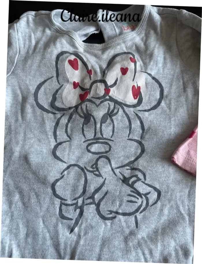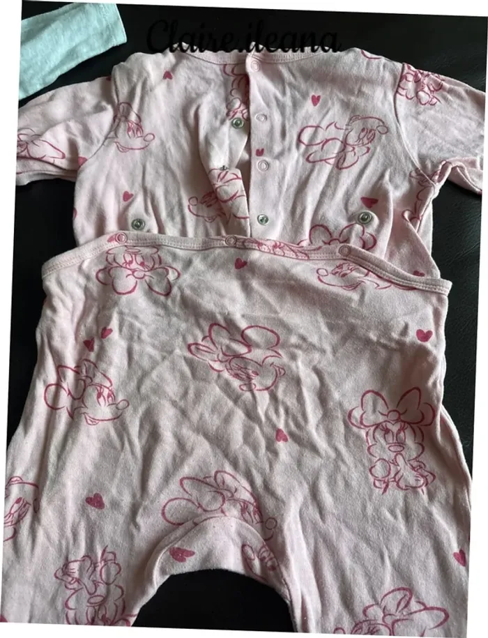 Petite tache sur le pyjama rose Ă  peine visible Le noeud de Minnie sur le gris voir photo #claireileana_12mois