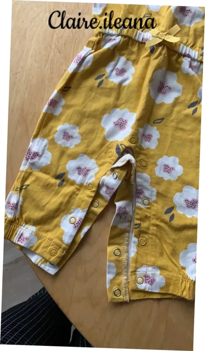 #claireileana_3mois Très bon état pas de tache ni trou Couleur Jaune et blanc, fleurs blanche Vintage