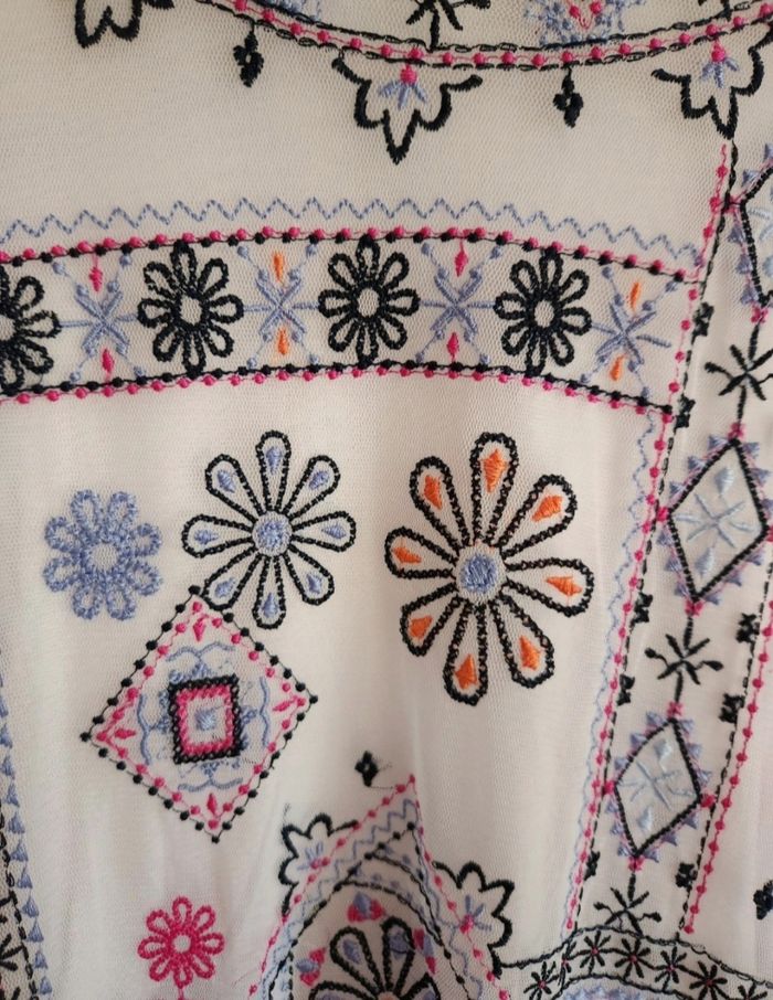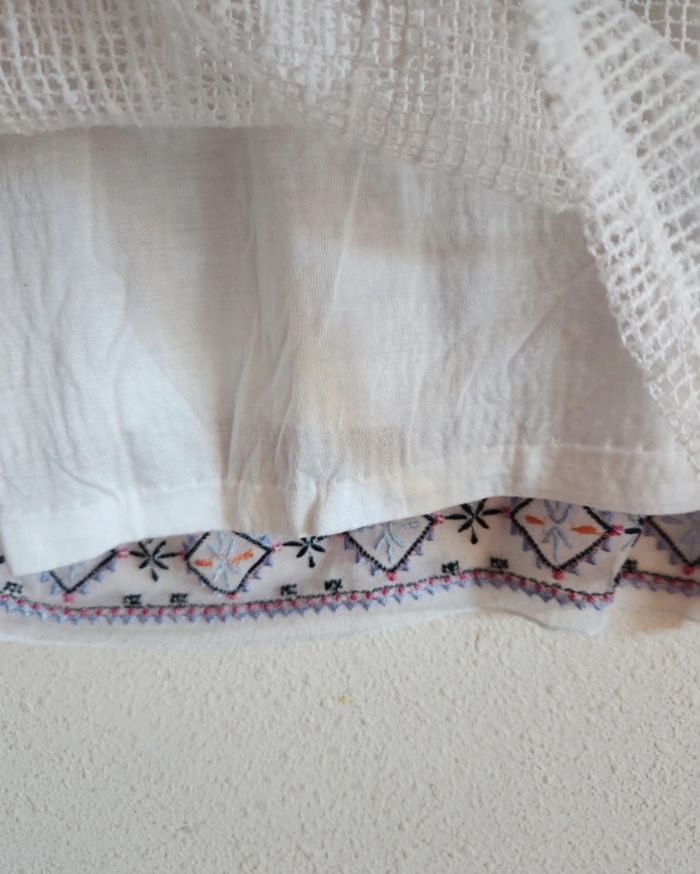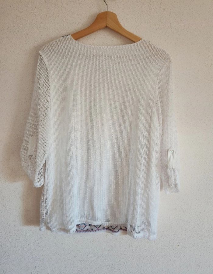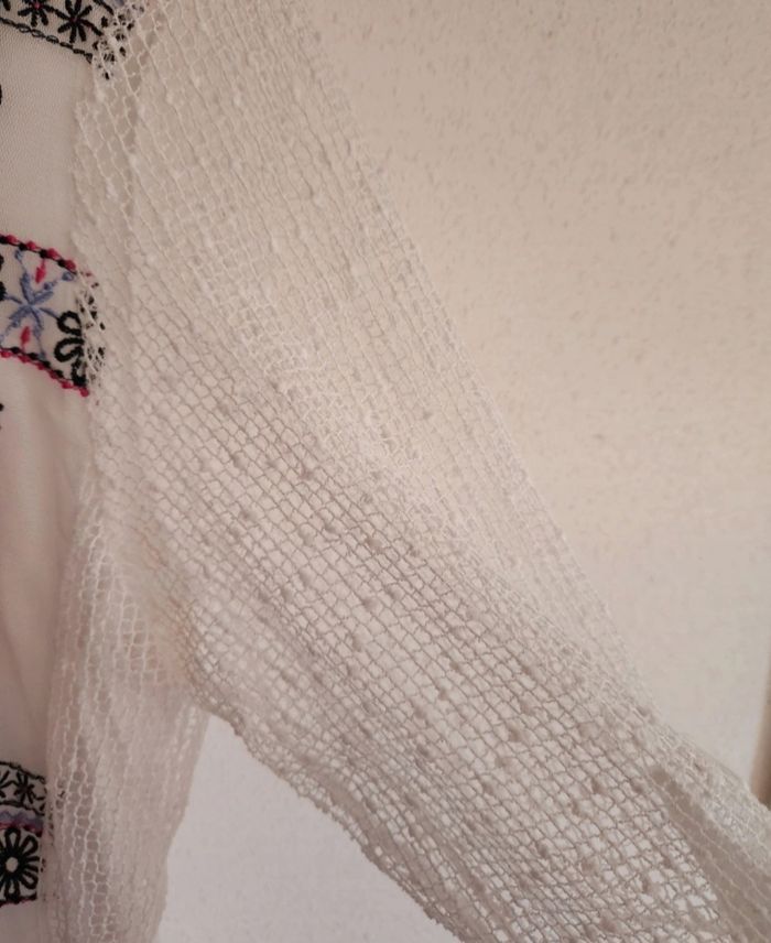 Haut blanc brodé C&A – Taille M, manches 3/4
