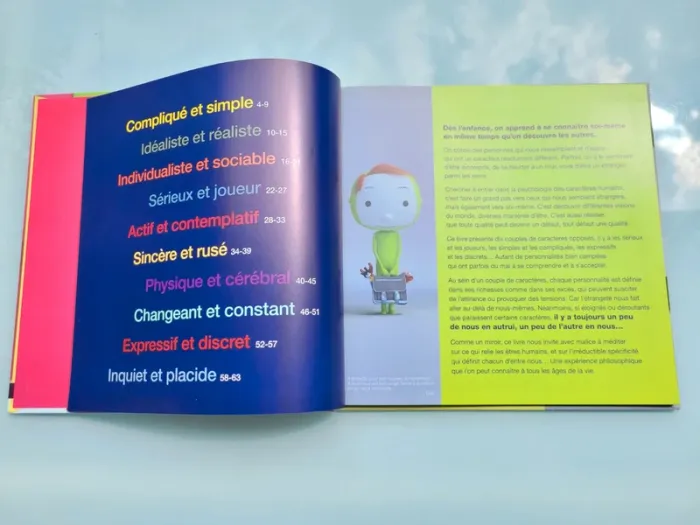 LE LIVRE DES GRANDS CONTRAIRES PSYCHOLOGIQUES Un livre prodigieux, indispensable pour petits et grands ! A travers des textes très simples et des illustrations magnifiques, cet ouvrage présente dix couples de personnages aux caractères opposés. Les points positifs et négatifs de chaque personnalité sont mis en avant. Dès 7 ans Dimensions 25.9 x 1.2 x 26.1 cm Très bon état Mes autres livres enfants : #livreenfantmooglou