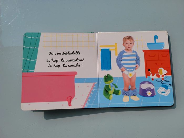 LES BÉBIMAGIERS LE POT LAROUSSE JEUNESSE Une histoire toute simple (une ligne, page de gauche) pour suivre Tim sur le pot Un mélange photo/illustration parfait pour l'identification Grâce au talent de l'illustratrice, les enfants découvrent aussi une histoire dans l'histoire ! : la petite peluche qui fait pipi aussi ! En fin d'ouvrage, 2 DP d'imagier présentent 16 mots autour du pot Très bon état Mes autres larousse : #livrelaroussemooglou Mes autres livres enfants : #livreenfantmooglou