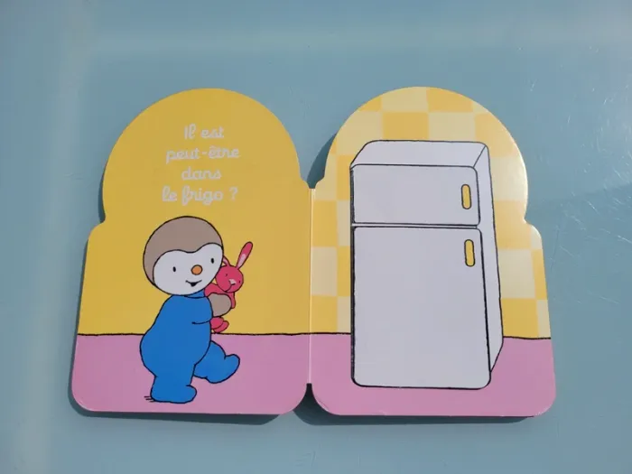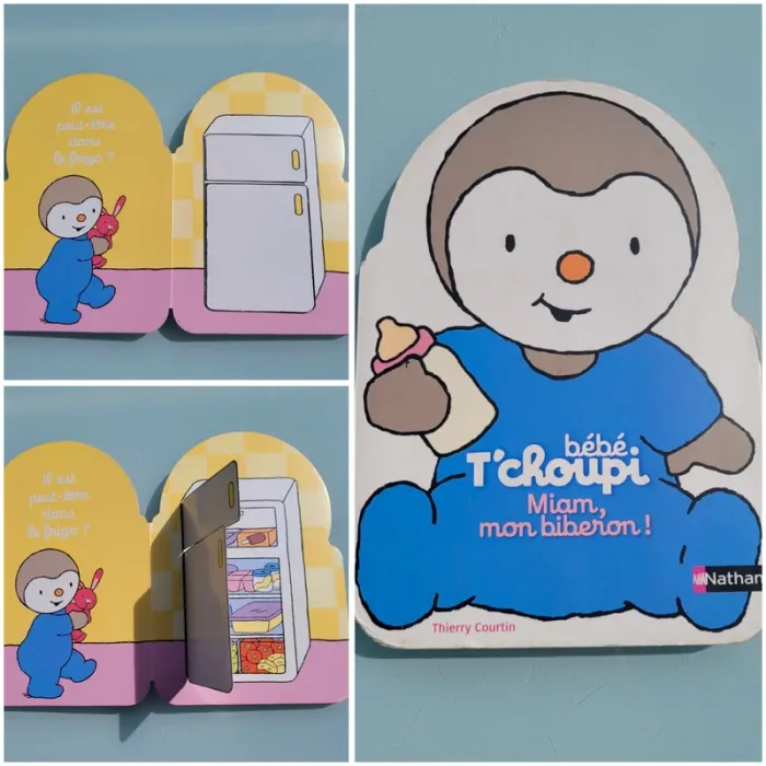 BÉBÉ T'CHOUPI MIAM MON BIBERON Un livre de cache cache Bébé T'choupi avec des grands flaps carton adaptés aux petites mains ! Bébé T'choupi a perdu son biberon. Où est-il passé ? Dimensions 16.2 x 1.7 x 23.2 cm Bords légèrements abîmés sinon en bon état Mes autres T'choupi : #tchoupimooglou Mes autres livres enfants : #livreenfantmooglou