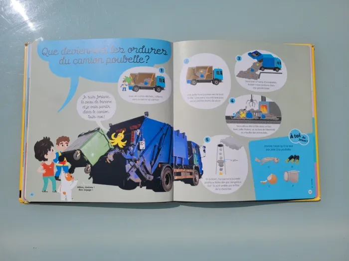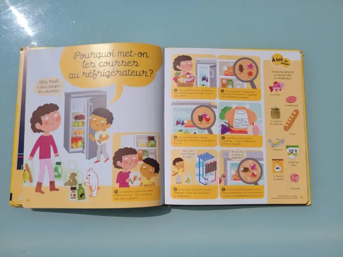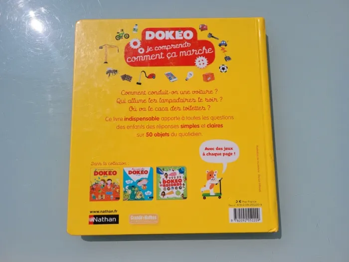 DOKÉO NATHAN JE COMPREND COMMENT SA MARCHE 50 objets expliqués de façon claire et ludique, à travers des questions d'enfants ! Qu'y a-t-il dans l'aspirateur ? Qui allume les réverbères le soir ? Où va le caca qui part dans les toilettes ? Comment fait-on le pain ? Comment voyage le colis de mamie ? 6 grandes parties : À table – On se fait beau – Les loisirs – À la maison – Dans la ville – Les transports Très bon état Mes autres livres enfants : #livreenfantmooglou