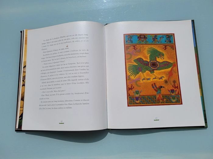 MIMAN JEUNESSE IZABAL L'ENFANT-OISEAU En pays Maya, Izabal est différente des autres enfants. L’oiseau de Jade, le quetzal, serait descendu sur Terre et y aurait déposé cette petite fille aux yeux verts. Depuis, Izabal semble figée dans le silence. Mais, lorsque pour ses douze ans, son père lui offre un ocarina, tout change : elle s’aperçoit que par son chant elle attire les oiseaux et communique avec elle. Ce don occasionne son malheur et il faudra l’intervention du dieu-oiseau pour lui rendre sa liberté. Un conte initiatique agrémenté de belles illustrations. Dimensions 25 x 1.1 x 29 cm Très bon état Mes autres livres enfants : #livreenfantmooglou