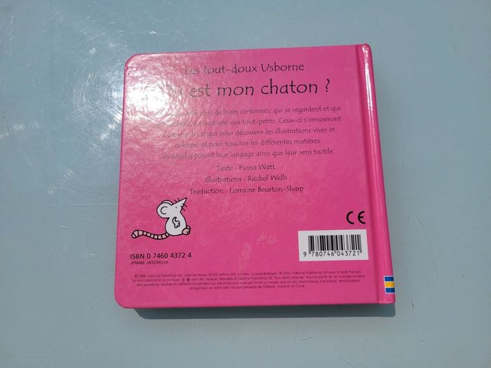 LES TOUT-DOUX USBORNE OÙ EST MON CHATON ? D'adorables livres à "toucher" pour les tout-petits, qu'ils pourront regarder avec leurs parents. Les illustrations très colorées, les matières variées et le texte simple favorisent le développement des sens et l'apprentissage du langage. En très bon état Mes autres livres à toucher : #livreatouchermooglou Mes autres tout-doux usborne : #lestoutdouxusbornemooglou Mes autres livres enfants : #livreenfantmooglou