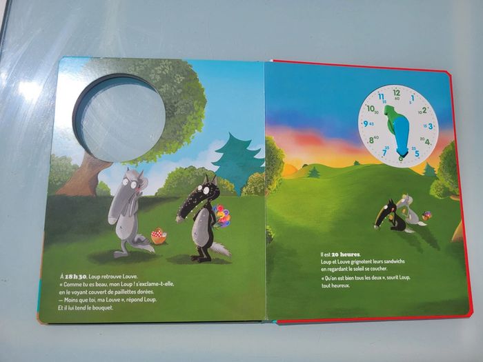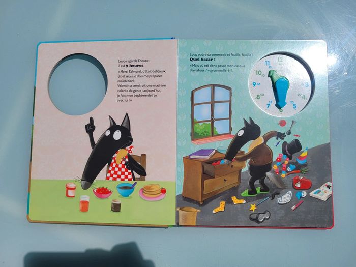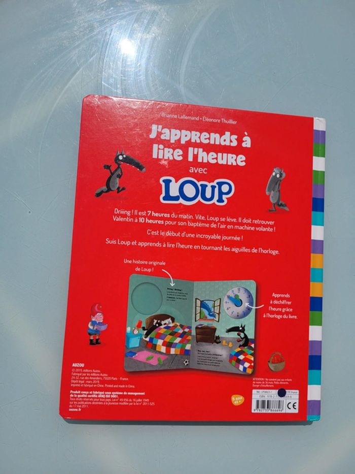 J'APPRENDS À LIRE L'HEURE AVEC LOUP TOUT CARTON Loup a un réveil difficile : 7 heures du matin c'est trop tôt pour se lever ! Mais vite, il doit retrouver Valentin à 10 heures pour son baptême en machine volante... Suis Loup à chaque moment de son incroyable journée et apprends à lire l'heure en tournant les aiguilles de l'horloge. Dimensions 24.5 x 1.5 x 29.9 cm En très bon état Mes autres livre de Loup : #leloupmooglou Mes autres livres enfants : #livreenfantmooglou