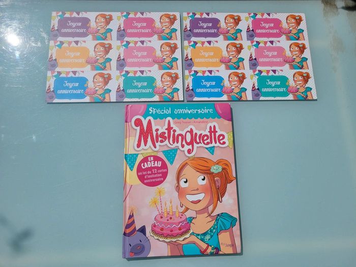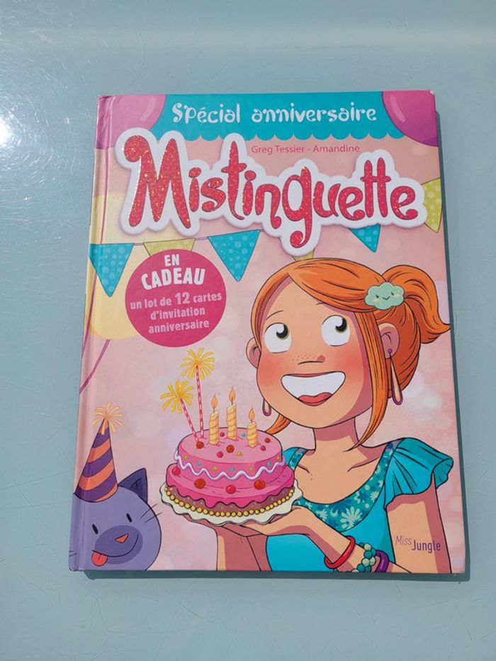 BD MISTINGUETTE HORS-SÉRIE SPÉCIAL ANNIVERSAIRE 🎂 AVEC 12 CARTES D'INVITATION ANNIVERSAIRE TRÈS BON ÉTAT, À PART 2 COINS LÉGÈREMENTS ABÎMÉS Mes autres BD : #bdmooglou #livreenfantmooglou