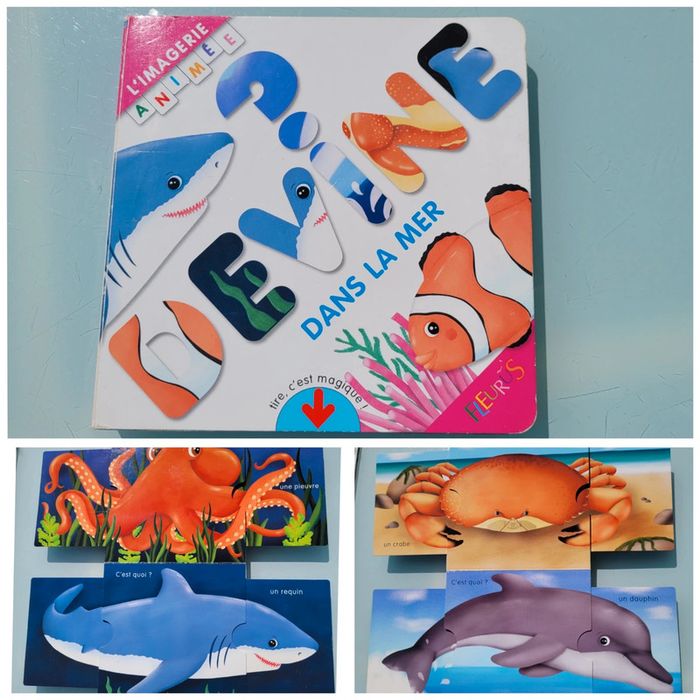 DEVINE DANS LA MER LIVRE SURPRISE ANIMÉ DE TIRETTES Chaque page du livre est animée. En tirant sur une languette, l'enfant va découvrir un … Chaque page du livre est animée. En tirant sur une languette, l'enfant va découvrir un poisson-clown, un requin, un dauphin, un crabe, une pieuvre, une baleine. Très bon état Mes autres livres enfants : #livreenfantmooglou