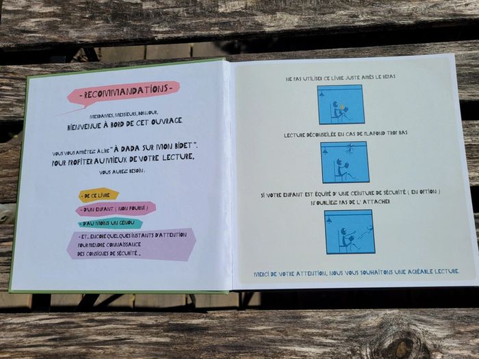 Éditions Frimousse À DADA SUR MON BIDET MESDAMES, MESSIEURS, BONJOUR, BiENVENUE À BORD DE CET OUVRAGE. POUR PROFiTER AU MiEUX DE LA LECTURE DE " À DADA SUR MON BIDET ", VOUS AUREZ BESOIN : - DE CE LIVRE D'UN ENFANT D'AU MOINS UN GENOU ET IL SERAIT JUDICIEUX DE : NE PAS UTILISER CE LIVRE APRÈS LE REPAS, ÉVITER LES PLAFONDS TROP BAS, OU MIEUX, UTILISER LA CEINTURE DE SÉCURITÉ Très bon état Mes autres livres enfant : #livreenfantmooglou