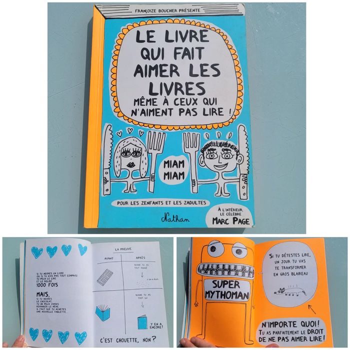 LE LIVRE QUI FAIT AIMER LES LIVRES MÊME À CEUX QUI N'AIMENT PAS LIRE 50 et quelques bonnes raisons d'aimer les livres ! - Des vraies raisons traités avec humour - Des fausses raisons, complètement loufoque ! Pour toute la famille, les enfants et les adultes, et en particulier pour ceux qui n'aiment pas lire ! Dès 8 ans. En très bon état Mes autres livres enfants : #livreenfantmooglou