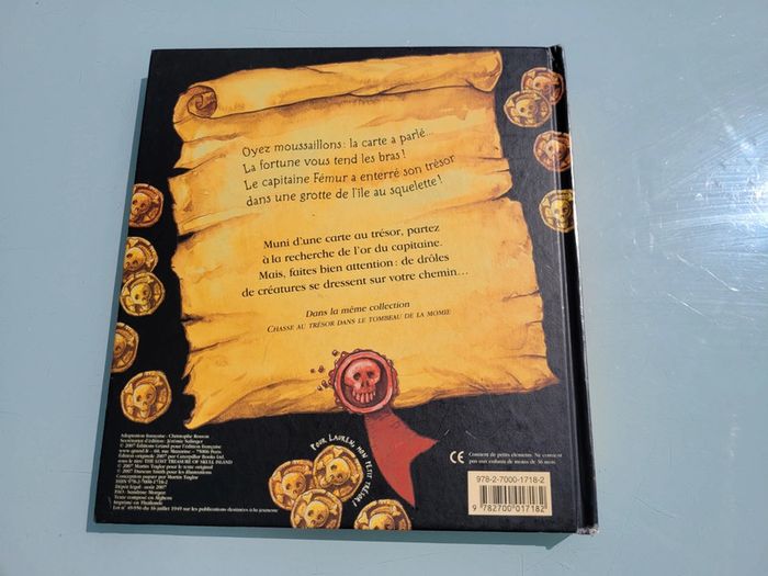 CHASSE AU TRÉSOR DANS L'ÎLE AU SQUELETTE LIVRE POP-UP Oyez mousaillons : la carte a parlé... La fortune vous tend les bras ! Le capitaine Fémur a enterré son trésor dans une grotte de l'île au squelette ! Muni d'une carte au trésor, partez à la recherche de l'or du capitaine. Mais faîtes bien attention : de drôles de créatures se dressent sur votre chemin... Coins abîmés sinon en très bon état Mes livres par thème : #livrepiratesmooglou Mes autres pop-up : #popupmooglou Mes autres livres enfants : #livreenfantmooglou