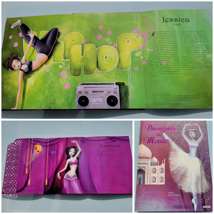 AUZOU ÉVEIL DANSEUSES DU MONDE Pour découvrir les merveilleuses histoires de danseuses des quatre coins du monde. Partez à la rencontre de Clara, la danseuse de tango, Cynthia, la rockeuse, Héloïse, le petit rat de l'Opéra, Maeva, la vahiné, mais aussi Zaina, la danseuse sénégalaise et Katja, la ballerine russe... Des jeunes filles passionnées qui vous feront partager leur amour de la danse ! Livre avec pleins de pages qui se deplient Les cokns sont abîmés et la tranche (cf photos) très bon état intérieur Mes autres livres enfants : #livreenfantmooglou