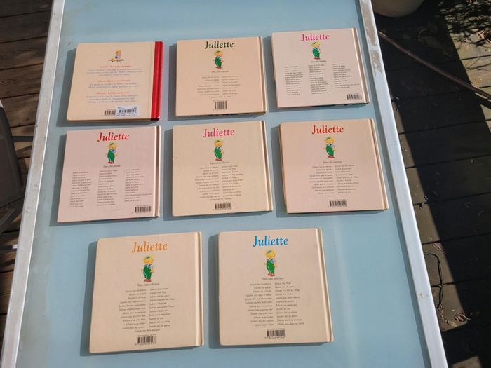 JULIETTE - Tome 3 : Juliette va à l'école (44) - Tome 7 : Juliette part en vacances (27) - Tome 13 : Juliette fête Noël (28) - Tome 18 : Juliette va à la piscine (28) - Tome 20 : Juliette va au zoo (28) - Tome 23 : Juliette fait de la musique (23) - Tome 24 : Juliette joue dans son jardin (41) - 3 histoires : Juliette chez Papy et mamie, Juliette fête son anniversaire, Juliette s'habille toute seule (44) Détail du prix : 3.90€ l'unité et 6.50€ le livre 3 histoires Certains montrent quelques signes d'usure mais en bon état général Mes autres livres enfants : #livreenfantmooglou