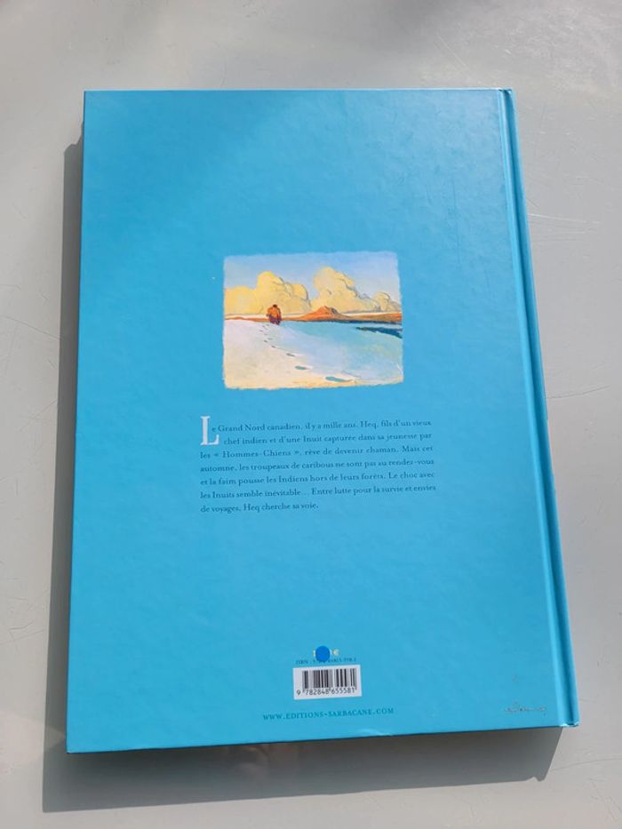 HEQ, LE CHANT POUR CELUI QUI DÉSIRE VIVRE ÉDITIONS SARBACANE GRAND FORMAT : 37.5x26.5 cm Le Grand Nord canadien, il y a mille ans. Heq, fils d'un vieux chef indien et d'une Inuit capturée dans sa jeunesse par les "Hommes-Chiens", rêve de devenir chaman. Mais cet automne, les troupeaux de caribous ne sont pas au rendez-vous et la faim pousse les Indiens hors de leurs forêts. Le choc avec les Inuits semble inévitable... Entre lutte pour la survie et envies de voyages, Heq cherche sa voie. En très bon état Mes autres livres enfants : #livreenfantmooglou