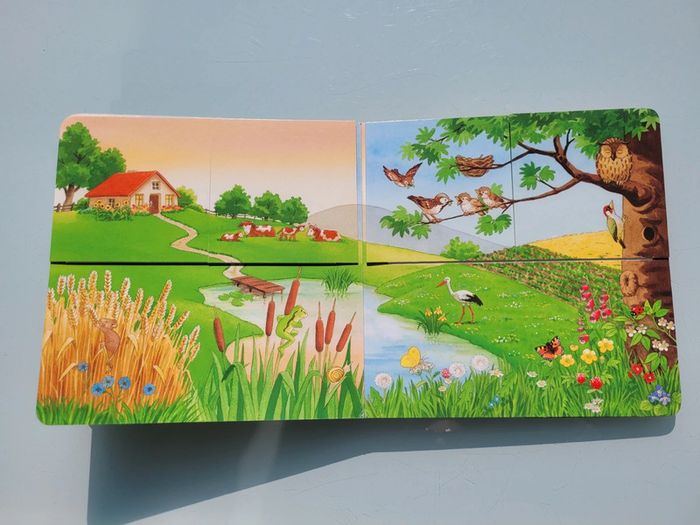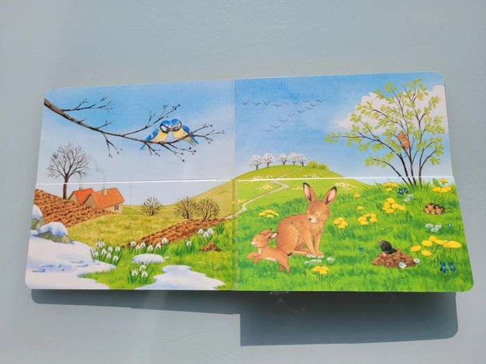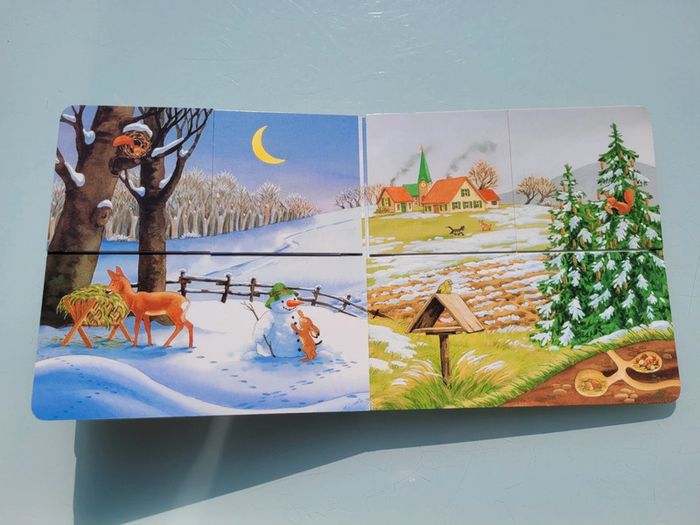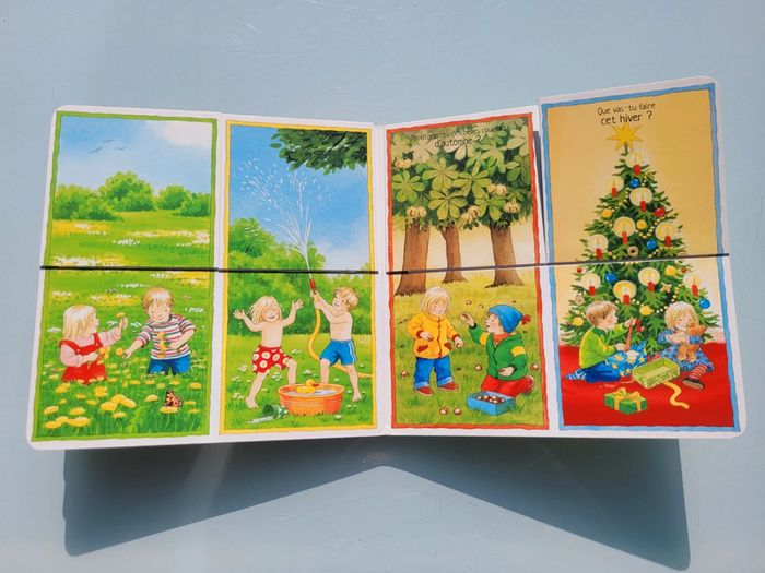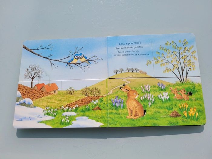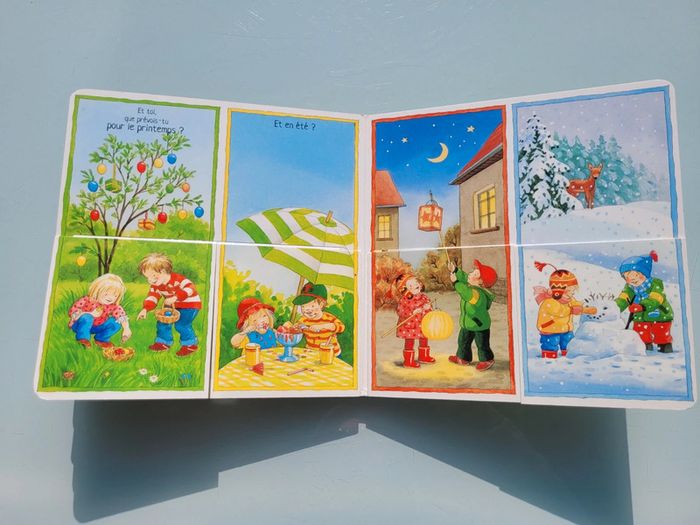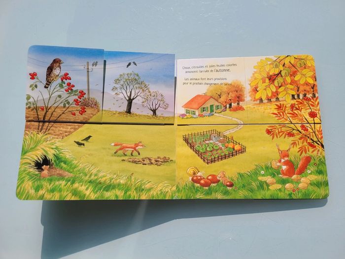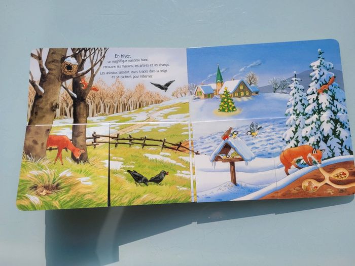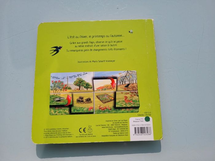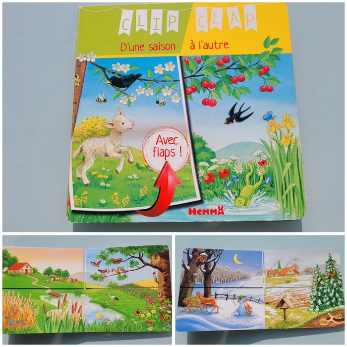 CLIP CLAP D'UNE SAISON À L'AUTRE Par un astucieux jeu de volets en demi pages, ce livre fait découvrir à l'enfant le même endroit vu à chaque saison de l'année. C'est ainsi que l'enfant pourra se rendre compte de tout ce qui se passe à chaque endroit à chaque saison de l'année selon le soleil, la pluie, la neige, le vent... En très bon état Mes autres livres à flaps : #livreaflapsmooglou Mes autres livres enfants : #livreenfantmooglou
