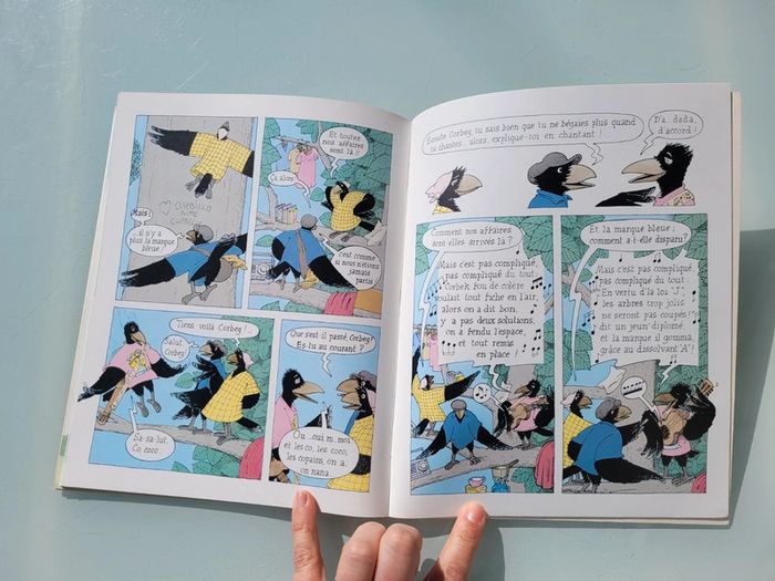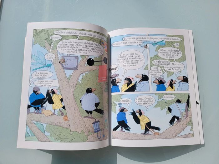 CORBELLE ET CORBELLO LA MARQUE BLEUE Pour rien au monde, Corbelle ne voudrait quitter son peuplier. Elle peut y boire paisiblement son chocolat avec son amoureux, Corbillo, et plonger de toute sa hauteur pour gagner la terre, ses ailes grandes ouvertes. Un jour, une marque bleue est tracée sur leur arbre. Leur domicile conjugal va être abattu, et Corbelle et Corbillo doivent déménager. Adieu train-train, une nouvelle vie s'annonce. Chercher un nid d'amour n'est pas chose facile, surtout quand on a mauvais caractère, de nombreuses exigences et des regrets plein le coeur. Très vite, rien ne va plus. Heureusement, Corbelle et Corbillo ont des amis pour veiller sur eux. Très bon état Mes autres livres enfants : #livreenfantmooglou #lecoledesloisirsmooglou