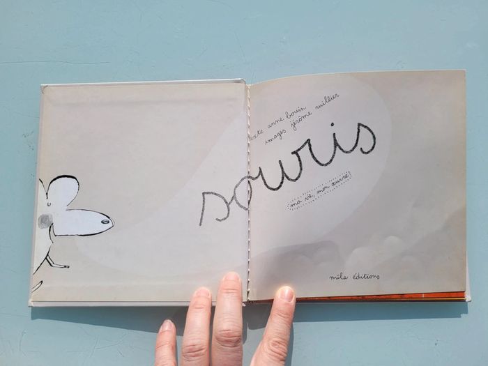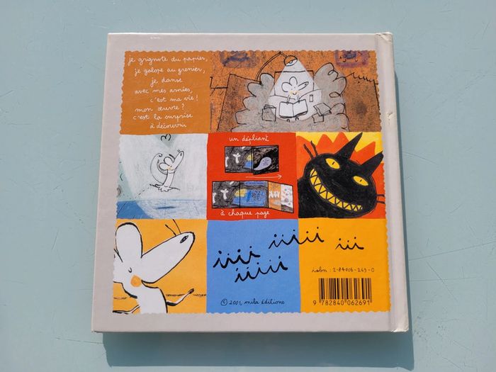 SOURIS MA VIE MON OEUVRE Je grignote du papier, je galope au grenier, je danse avec mes amies, c'est ma vie ! Mon oeuvre ? c'est la surprise à découvrir Dimensions : 17x17 cm En très bon état (un minuscule accroc sur la tranche arrière, cf photo) Mes autres livres enfants : #livreenfantmooglou