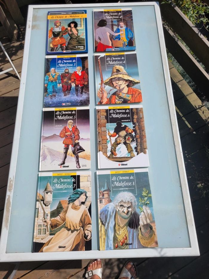 ⚠️ POUR CE LOT PAS D'ENVOI CHRONOPOST, COLISSIMO OU VINTED GO, COLIS TROP LOURD!!! UNIQUEMENT DU MONDIAL RELAY ⚠️ 15 BD Les Chemins de Malefosse Édition Glénat Elle sont en très bon état, seul le tome 1 est un peu vieillissant - Tome 1 : Le diable noir, octobre 1983, cotée 20€ - Tome 2 : L'attentement, janvier 1987, réédition - Tome 3 : La vallée de Misère, janvier 1986, cotée 18€ - Tome 4 : Face de Suie, Avril 1987, cotée 15€ - Tome 5 : L'Or Blanc, Septembre 1988, cotée 15€ - Tome 6 : Tschäggättä, Juillet 1991, cotée 15€ - Tome 7 : La Vierge, Octobre 1993, cotée 15€ - Tome 8 : L'Herbe d'oubli, janvier 1995, cotée 15€ - Tome 9 : La Plume de Fer, Septembre 1997, cotée 15€ - Tome 10 : La Main Gauche de Dieu, Fevrier 2000, cotée 18€ - Tome 11 : Le Feu sur l'eau, Avril 2002, cotée 15€ - Tome 12 : La part du Diable, Juin 2004, cotée 15€ - Tome 13 : Quiconque meurt..., Juin 2005, cotée 18€ - Tome 14 : Franc-routier, mai 2006, cotée 18€ - Tome 17 : Les 7 Dormants, Octobre 2008, cotée 25€ ⚠️ Je ne vends séparé que les debuts ou fin du lot mais je ne vend pas une en milieu de lot ⚠️ Pour voir mes autres BD : #bdmooglou