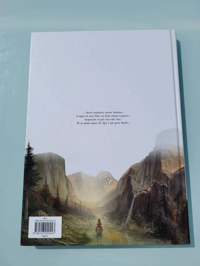C’est une vallée très reculée, quelque part au fin fond d’un pays froid qui pourrait être l’Alaska ou la Sibérie. Presque personne n’y vit, hormis la faune sauvage et un peuple autochtone discret. Hélas, le sous-sol regorge de matières premières et bientôt les affairistes déferlent, pressés d’y construire une ville, des mines, un barrage… Les premières exactions surviennent ; personne ne doit faire obstacle au « progrès ». Mais il y a pourtant un témoin silencieux à cet immense désordre : Kraa, un jeune aigle très puissant qui a appris la survie, maître secret de la vallée. Avec Yuma, un adolescent indien dont on vient de massacrer la famille, et avec lequel il a développé un lien d’essence chamanique, Kraa, dont la voix off sert de fil rouge au récit, entre en résistance… En très bon état Couverture rigide Prix neuf : 18€ Pour rentabiliser vos frais de port, pensez à regarder mes autres livres : #livreenfantmooglou #bdmooglou