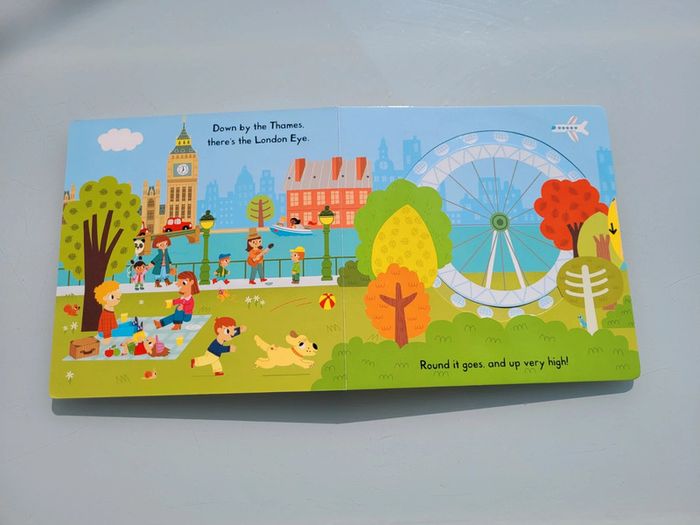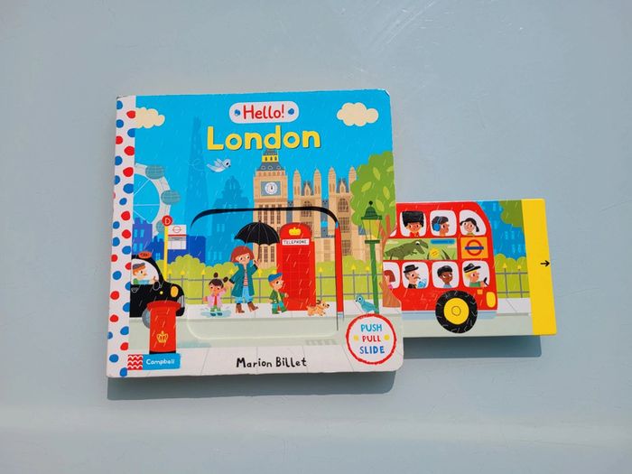 HELLO! LONDON LIVRE EN ANGLAIS Poussez, tirez et faites glisser les scènes de Londres pour explorer les sites touristiques de la ville animée. Tournez le London Eye, ouvrez et fermez le Tower Bridge, et même hissez le drapeau au palais de Buckingham ! Faisant partie de la gamme populaire Campbell London, Hello ! London est un grand livre cartonné lumineux doté de mécanismes faciles à utiliser, conçu pour les tout-petits. Les illustrations colorées de la célèbre illustratrice française Marion Billet regorgent de détails et d'éléments à repérer, ce qui en fait une introduction parfaite à Londres et un excellent moyen de partager les souvenirs d'une première visite. Grand format : 25.4 x 1.78 x 25.4 cm Tout carton très bon état ⚠️ entièrement en anglais Mes autres livres en anglais : #livreanglaismooglou Mes autres livres enfants : #livreenfantmooglou