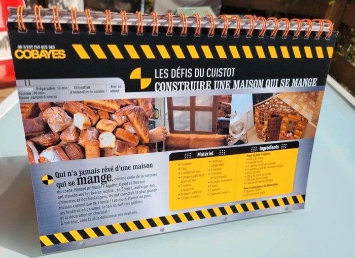 - Les défis du Cuistot : Fabriquer des bonbons, construire une maison qui se mange, couper des oignons sans pleurer, fabriquer du chewing-gum...