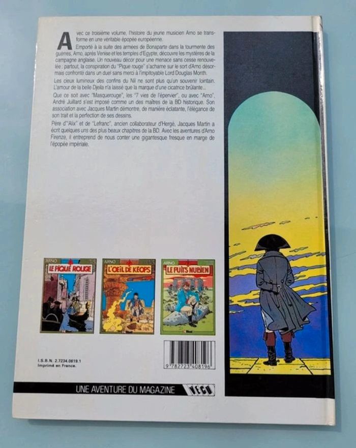 Lot des 4 premiers tomes de la BD Arno, en EO cotées : - Tome 1 : Le Pique Rouge, janvier 1984 - Tome 2 : L'Oeil de Kéops, Avril 1987 - Tome 3 : Le Puits Nubien, 1987 - Tome 4 : 18 Brumaire, mars 1994 En très bon état aux vues de l'âge...quelques signes de fatigue comme le jaunissement de certaines pages où la couverture arrière du tome 1 légèrement plissée...mais interieurs nikels Pour voir mes autres BD : #bdmooglou 17€ la BD 54.90€ les 4