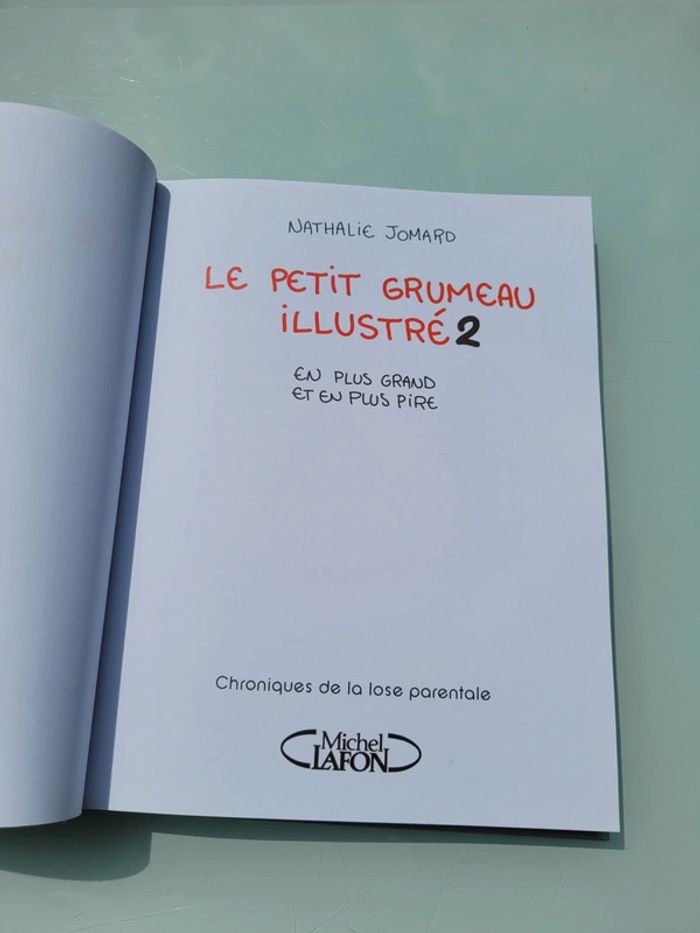 Le petit grumeau illustré - tome 2 Chroniques d'une maman avertie Le Grumeau a grandi. Il marche, parle (enfin il essaie) et donne même son avis sur le monde qui l'entoure. Quel pauvre innocent êtes-vous pour croire que le pire est derrière vous ? La marmaille à cet âge est plus déchaînée que jamais. Des crottes de nez cachées sous la table, et des ruses les plus perverses pour obtenir le jouet convoité aux gaffes les plus embarrassantes... Préparez-vous, avec les anecdotes tordantes d'un Grumeau en pleine croissance, à affronter cette cruelle vérité qui sort de la bouche de vos enfants. Dans ce nouvel opus, Nathalie Jomard nous livre ses tribulations de maman confirmée et avertie. Inutile d'espérer un repos bien mérité : il est temps de réaliser une fois pour toutes que oui, un Grumeau, ça change la vie ! Format : 18,8 x 25 Prix du neuf : 17.20€ Très bon état Pour voir mes autres BD : #bdmooglou