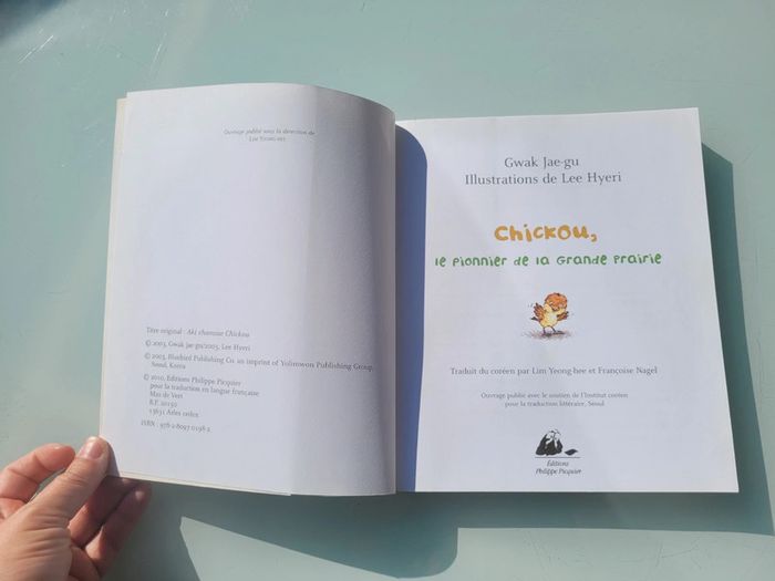 CHICKOU, LE PIONNIER DE LA GRANDE PRAIRIE Pas facile de se débrouiller tout seul quand on est un petit moineau âgé de quelques mois. Mais quand on est porte par un grand rêve, tout devient possible ! Traverser les océans, se battre contre les éperviers... et peut-être même trouver la Grande Prairie, le paradis des oiseaux et de tous les animaux ! Voici ce que dit l'auteur à propos de son livre : " J'ai voulu raconter la bravoure d'un petit moineau de rien du tout qui traverse les tempêtes de la vie à la poursuite de son rêve. Avoir un rêve et s'efforcer de le réaliser est le sens même de la vie pour tous les êtres vivants". En très bon état Mes autres livres enfants : #livreenfantmooglou