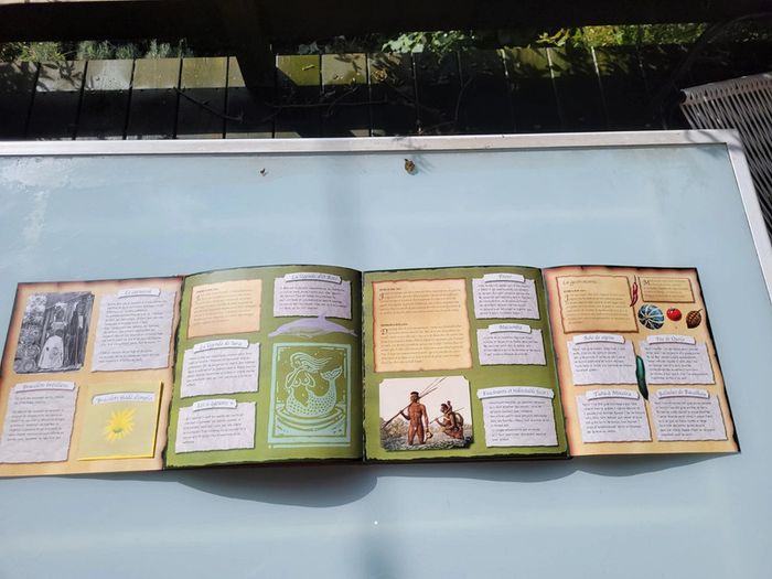 En décollant, le 5 octobre 1923, à bord de sa surprenante montgolfière, le Zéphyr, James Mac Killian n'avait qu'un but : découvrir le monde et les divers peuples qui en font la richesse. De ce fabuleux voyage, il a laissé un incroyable journal de bord qui vous amènera des Amériques au Groenland, de l'Europe à l'Asie, et de l'Australie à l'Afrique. A votre tour, suivez ses traces à la rencontre des Inuits, des Mik'maqs, des Indiens, des Dogons, des Maoris..., leurs coutumes, leurs légendes, leur mode de vie plein de surprises, ainsi que toute la faune et la flore qui les entouraient et les faisaient vivre. Dimensions ‎28 x 2.8 x 27.6 cm En bon état, juste un dépliant scotché (cf dernières photos) Pour voir mes autres livres enfants : #livreenfantmooglou